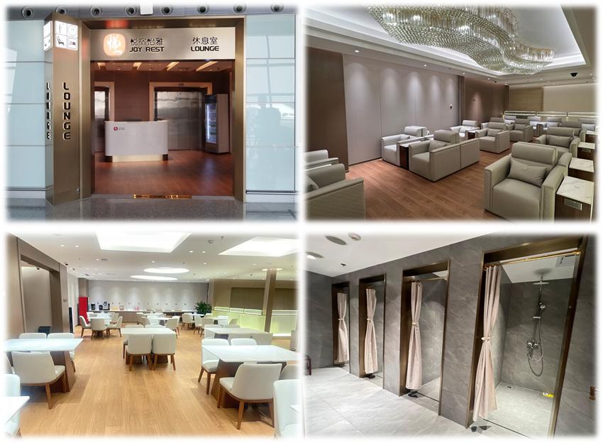 計(jì)時(shí)休息室共計(jì)7間客房、商務(wù)區(qū)設(shè)有29個(gè)客位、臨時(shí)睡眠區(qū)設(shè)有47個(gè)躺椅及用餐區(qū)域設(shè)有56個(gè)座椅等,高峰期可以保障接待184名旅客。休息室以空間重構(gòu)為基礎(chǔ)、功能升級(jí)為核心、服務(wù)優(yōu)化為延伸,通過智能化科技與人性化設(shè)計(jì)的完美融合,在空間規(guī)劃和功能布局上實(shí)現(xiàn)有機(jī)結(jié)合,為中外旅客打造舒適的候機(jī)體驗(yàn)。采用流線型門頭與暖色調(diào)燈光,融入現(xiàn)代元素與機(jī)場(chǎng)特色,營(yíng)造出兼具現(xiàn)代感與溫馨氛圍的候機(jī)空間。通過空間的合理布局,使這道與旅客接觸的首道服務(wù)窗口實(shí)現(xiàn)快速接待功能,顯著提升旅客接待服務(wù)效率。以暖色調(diào)墻面勾勒溫馨基調(diào),搭配木地板的溫潤(rùn)質(zhì)感,打破傳統(tǒng)酒店的冷硬感。從踏入大門的第一刻起,就為旅客卸下奔波疲憊,營(yíng)造“歸家般的松弛感”。休息室內(nèi)采用碧波綠的全新沙發(fā)及躺椅,從柔軟面料到搭配可躺臥功能,都為旅客帶來如沐春風(fēng)之感,提供了極致舒適的休憩體驗(yàn)。商務(wù)區(qū)沙發(fā)組合與智能充電茶幾,配備高速無線網(wǎng)絡(luò)和多接口充電站隱入桌面,讓商務(wù)洽談與休閑社交無縫切換,大大提升旅客的停留舒適度,滿足旅客對(duì)移動(dòng)互聯(lián)的需求。