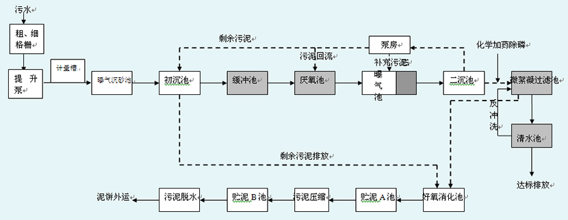 格柵、初沉池、曝氣池、厭氧池、二沉池、沙濾間 |
