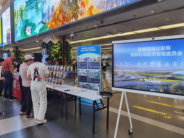 為積極踐行“平安中國(guó)”建設(shè)理念,扎實(shí)開(kāi)展首都機(jī)場(chǎng)“平安民航”建設(shè),按照民航局、首都機(jī)場(chǎng)集團(tuán)相關(guān)工作部署,近日,首都機(jī)場(chǎng)在2號(hào)、3號(hào)航站樓組織開(kāi)展了國(guó)際禁毒日宣傳活動(dòng)。本次活動(dòng)由首都機(jī)場(chǎng)公安局主辦、首都機(jī)場(chǎng)航空安保委員會(huì)協(xié)辦。在活動(dòng)中,公安青年民警與首都機(jī)場(chǎng)股份公司青年志愿者成立了聯(lián)合宣講隊(duì),通過(guò)知識(shí)講解、樣品展示、宣傳冊(cè)發(fā)放、互動(dòng)問(wèn)答等多種形式,面向在首都機(jī)場(chǎng)出行的旅客和現(xiàn)場(chǎng)員工,全方位、深層次地普及禁毒知識(shí),有效提高了廣大旅客和員工的識(shí)毒、防毒、拒毒能力,營(yíng)造了“健康人生、無(wú)毒空港”的良好氛圍。(房志華 李郝攝影報(bào)道)